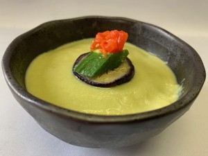 鯛骨を焼いてからじっくりと煮込んだスープをベースに餡を作り、