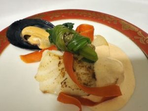 【本日の鮮魚のムニエル、バジル風味・鱈の白子ソース】